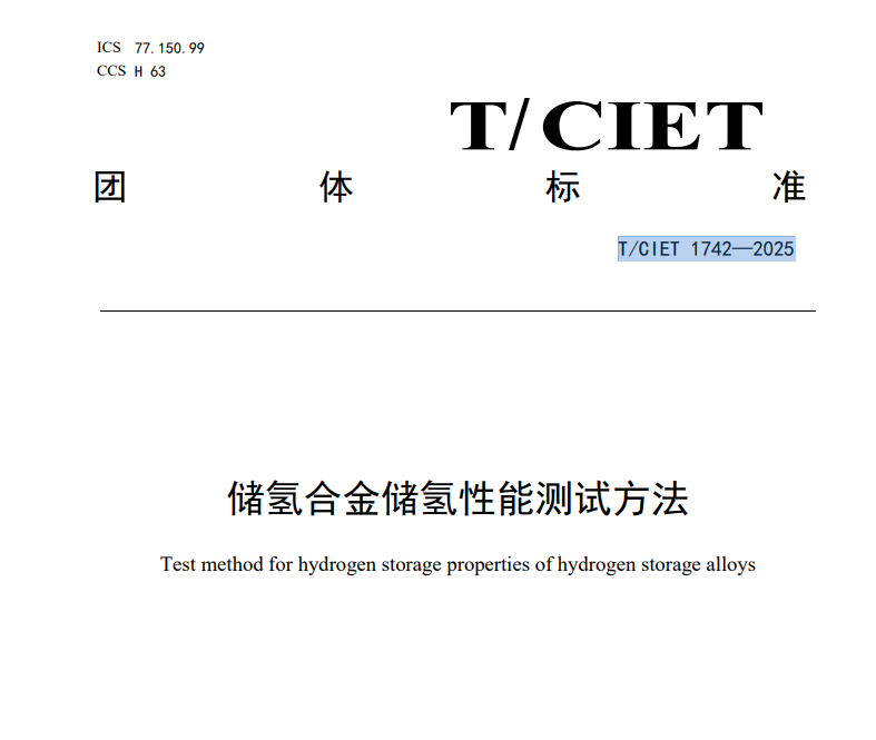 5. 《储氢合金储氢性能测试方法》(编号:T/CIET 1742—2025):