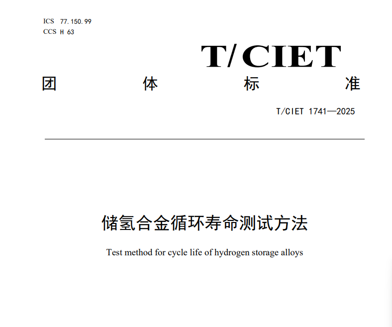 6. 《储氢合金循环寿命测试方法》(编号:T/CIET 1741—2025):