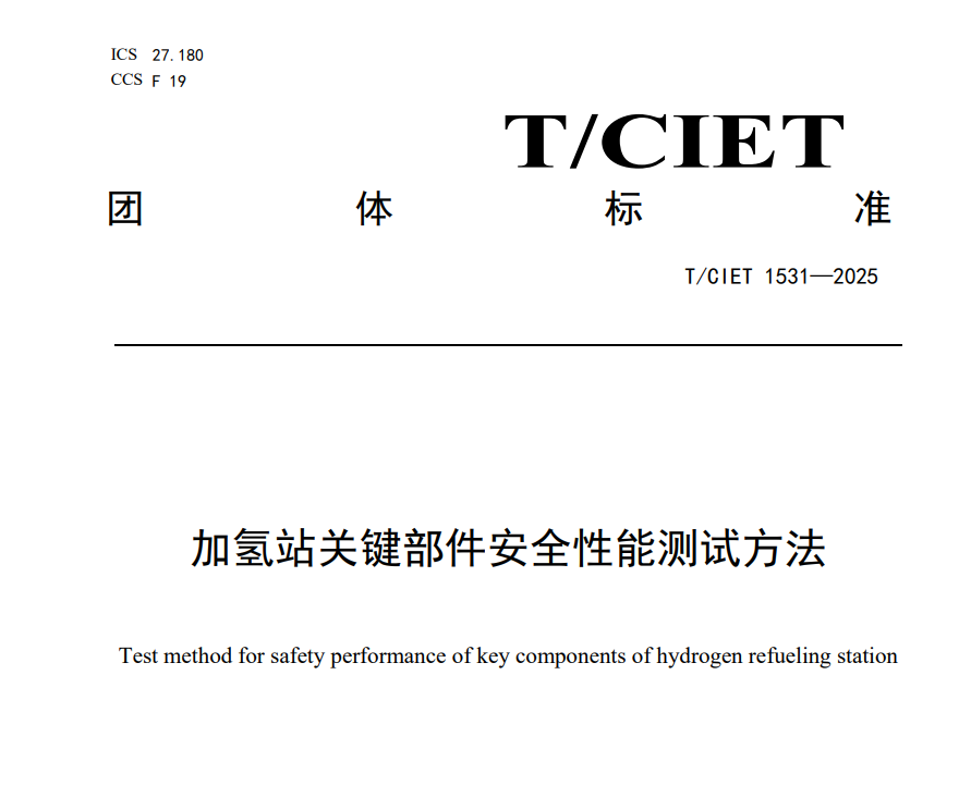 3. 《加氢站关键部件安全性能测试方法》(编号:T/CIET 1531—2025):