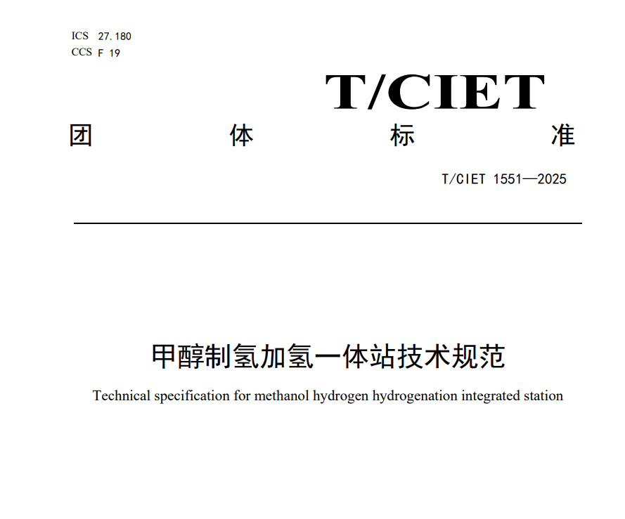 1. 《甲醇制氢加氢一体站技术规范》(编号:T/CIET 1551—2025):