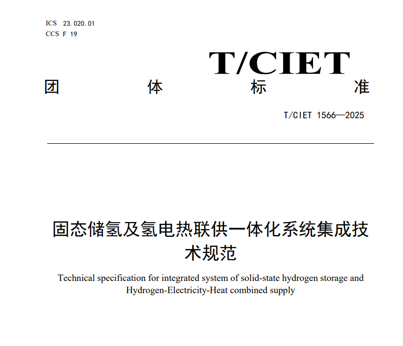4. 《固态储氢及氢电热联供一体化系统集成技术规范》(编号:T/CIET 1566—2025):