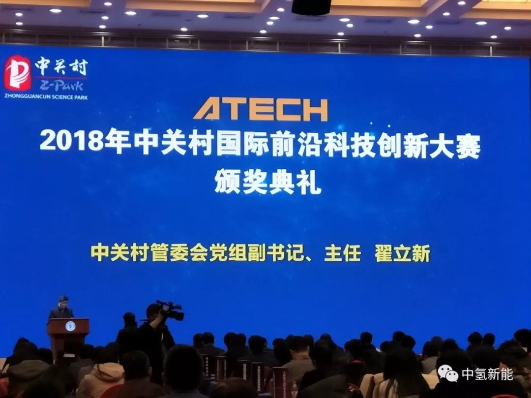 2019年1月11日,由教育部科技司、中科院北京分院指导,中关村科技园区管委会、海淀区政府、通州区政府、昌平区政府、平谷区政府、延庆区政府联合主办,中关村前沿科技与产业服务联盟、中关村银行承办的“2018中关村国际前沿科技创新大赛颁奖典礼”在京举办。中氢新能技术有限公司在本届评选中,凭借国内领先的甲醇重整制氢燃料电池技术荣获“2018中关村国际前沿科技创新大赛---节能环保及新能源领域TOP10”。